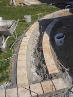 Darum habe ich etwas höher betoniert und muss dann beim Steine legen diese Steine dementsprechend zuschneiden.