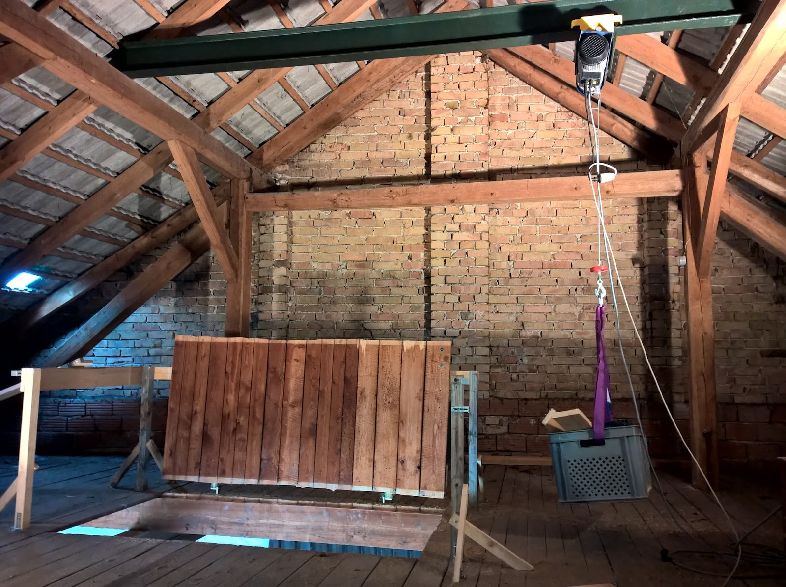 Die Winde habe ich mit Distanzhölzer montiert, damit diese Stabil auf dem kleinen I-Träger aufliegt, und nicht mit der Verschraubung der Seilklemme kollidiert.