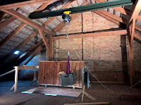 Im nächsten Schritt wird der kurze I-Träger, auf welchen anschließend die Winde geschraubt wird, an der Laufkatze montiert.