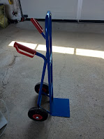 Als Ausgangsmaterial hatte ich mich für die günstigste Sackkarre (oder Sackrodel, wie wir Österreicher sagen) vom Baumarkt entschieden. Eigentlich wollte ich die ursprünglichen blauen pannensicheren Räder vom Schweißgerät auf die Rodel montieren, allerdings waren da schon ebenfalls Pannensichere montiert. Bei dem günstigen Preis hat mich das sehr gewundert!