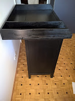 Damit es keine zu großen Farbunterschiede gibt, habe ich die Auflage im selben Farbton des Schrankes lasiert: Ebenholz. Es waren 3 Anstriche notwendig.