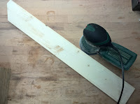 Das Leimholz hatte eine etwas rauere Oberfläche als das eigentliche Möbelstück. Somit war es unerlässlich die Teile vor dem Zusammenbau mit der Schleifmaschine zu bearbeiten. Das Ganze passierte in drei verschiedenen Körnungen: 60, 120 und 240. Danach ist das Leimholz glatt wie ein Baby-Popo. Händisches Nachschleifen bleibt einem leider auch nicht erspart.