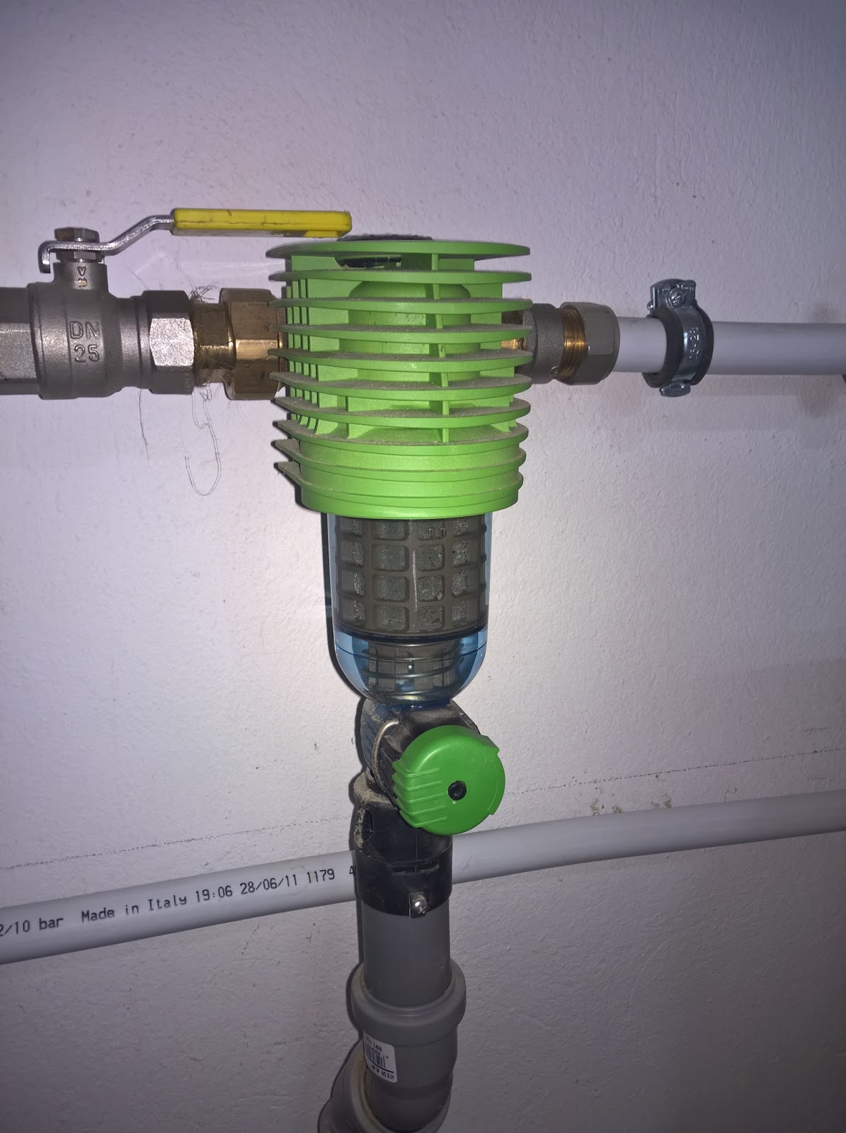 Vor der Enthärtungsanlage sollte ein Wasserfilter verbaut werden, damit keine Fremdstoffe in die Anlage gelangen. Wir haben hier ebenfalls auf einen Grünbeck Filter mit Rückspulfunktion verbaut.