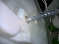 Jetzt hat man Zugang zum Überlauf an der Rückseite des Solebehälters (roter Kreis).