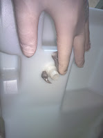Der Überlauf scheint nur eingeclipst zu sein. Wurde eventuell auf die Dichtung vergessen? Da das Wasser keinen Druck auf den Überlauf ausübt, sondern in diesen nur abfließt, kann dieser einfach mit etwas Silikon abgedichtet werden.