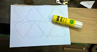 Die Herzen habe ich im Computer gezeichnet und mit einer Größe von 6x6cm ausgedruckt. Mit einem Klebestick wurde diese danach auf ein etwa ein etwa 3cm dickes Eichenbrett geklebt.