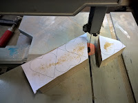 Die Rundungen lassen sich natürlich nicht so gut mit der Bandsäge schneiden. Die Ecken verschwinden dann beim Schleifen.