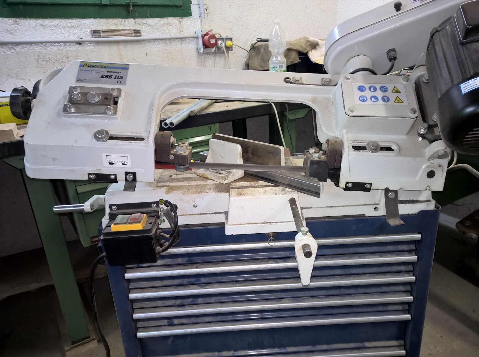 Dann habe ich noch in Youtube dieses Video gesehen, und wie bei diesen Tisch eine Metallsäge integriert wurde. Das hat mir natürlich sehr gut gefallen, und ich will mir die Möglichkeit für diese Erweiterung nicht verbauen. Also habe ich an 4 Stück Formrohr ein Loch gebohrt, darüber eine Mutter angeschweißt und jedes davon an eine Ecke des Tisches angeschweißt. So kann zukünftig ein Add-On jederzeit angesteckt und fixiert werden. Eine Tischverlägerung wäre ebenfalls denkbar... Es wird also eine Fortsetzung geben.