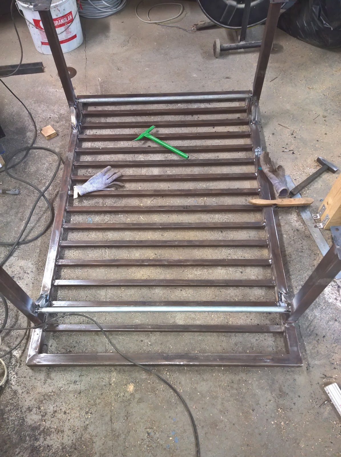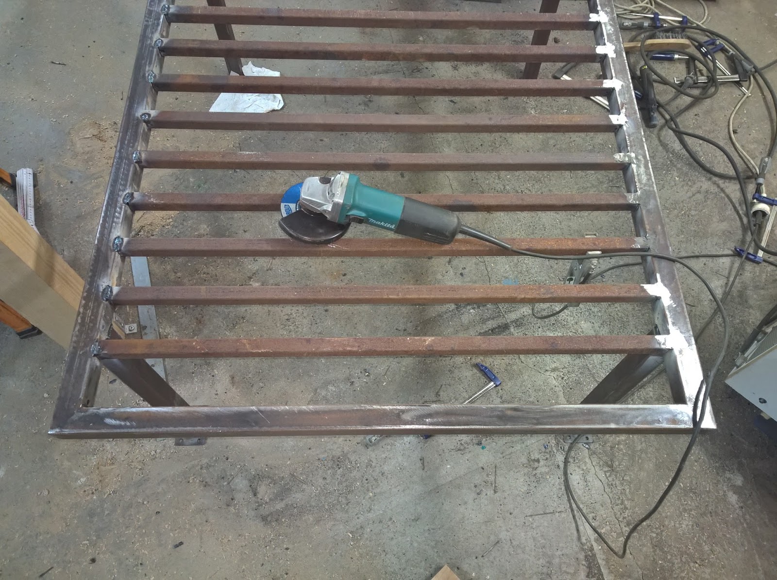 Der Rest muss natürlich auch verschweißt werden. Anschließend sollten überstehende Schweißnähte mit dem Winkelschleifer und Schrubbscheibe abgeschliffen werden.