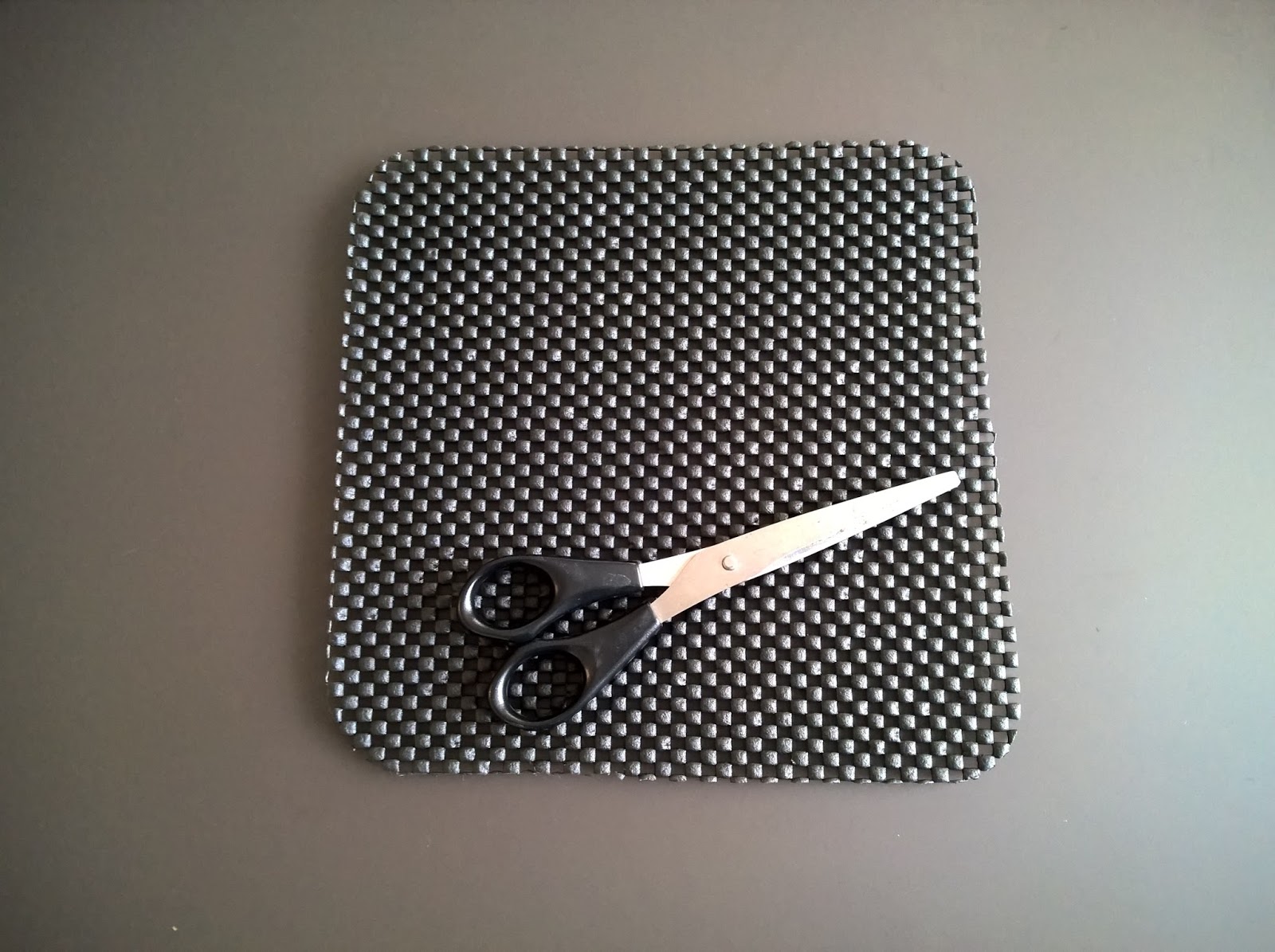 Als Unterlage habe ich eine Anti-Rutsch-Matte verwendet, damit die Eichenplatte nicht, wie der Name schon sagt, am Tisch hin und her rutscht.