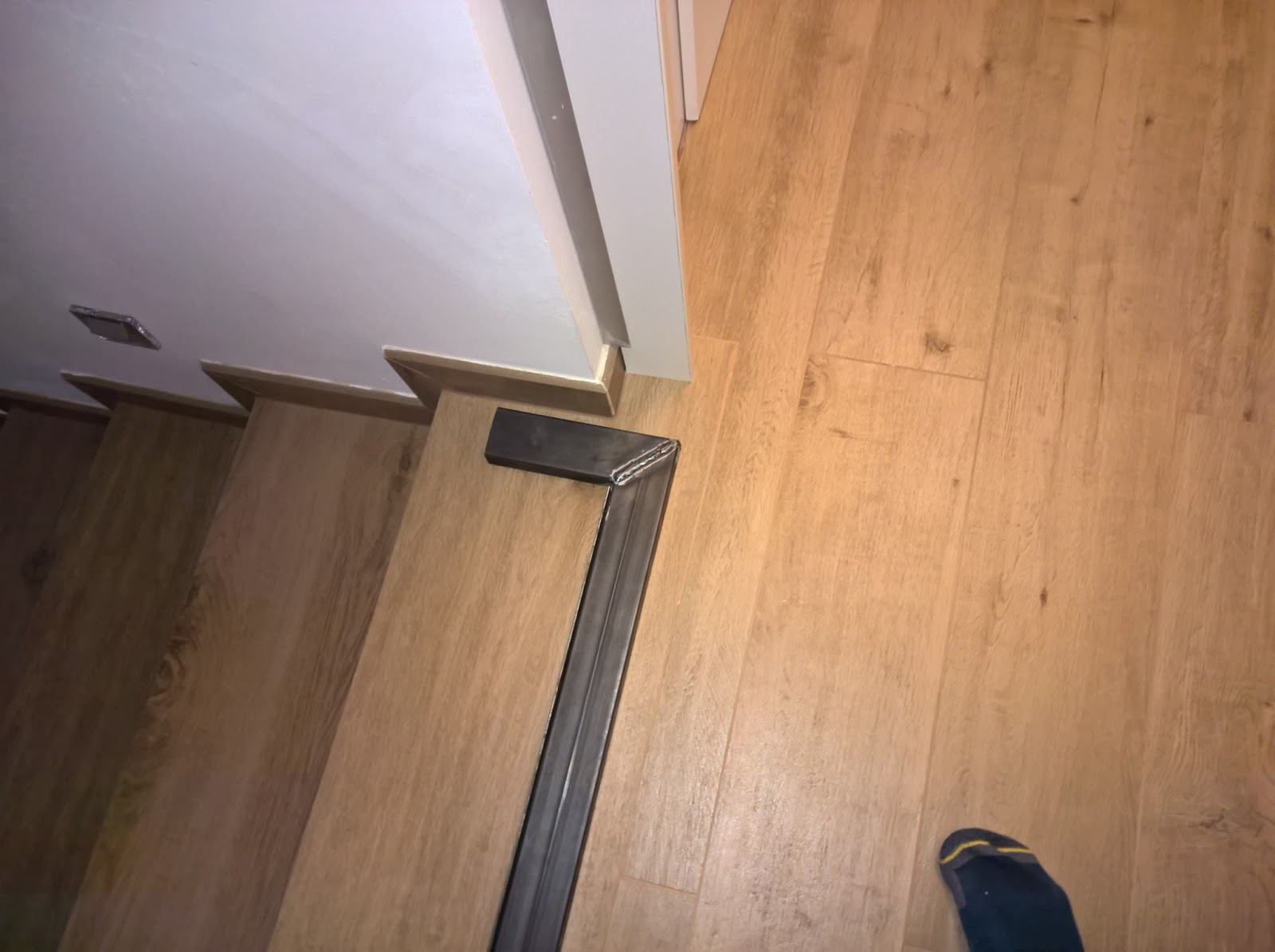 Ziel ist es einen flachen Rahmen am Boden zu bauen, welcher sich an der bestehenden Sockelleiste verspreizt. Man muss dann aber immer über den Rahmen steigen, wenn man durch das Schutzgitter gehen will. Jedoch funktionieren selbst die gekauften Spreizgitter nach diesem Prinzip und daher halte ich diesen Umstand für durchaus tragbar.