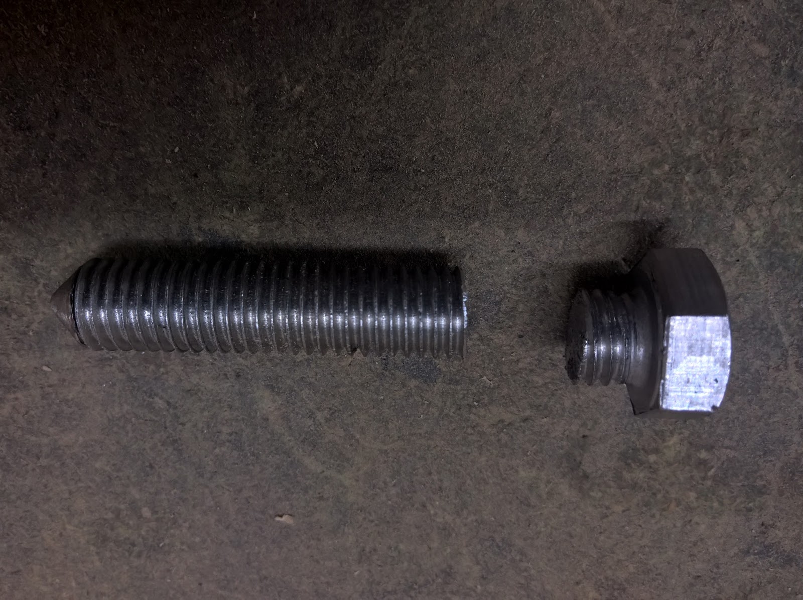 Um das Gewinde nicht zu beschädigen ist es ratsam die Schraube immer mit einer Mutter, wie am Bild ersichtlich, in den Schraubstock ein zu spannen.
