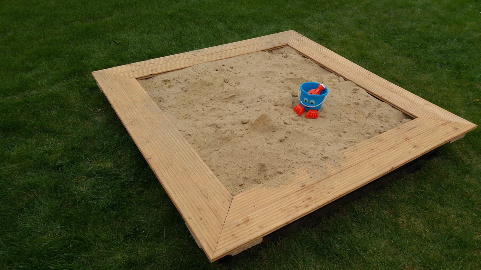 Der Osterhase brachte einen Sandkasten, und nachdem der ohnehin am Burnout kratzt hat ihn Papa ein wenig unter die Arme gegriffen: