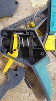 Vielen Dank für die Dokumentation der Reparatur. Bei mir war noch nichts gebrochen, aber der Vorschub fürs Spannen blieb aus. Die Anleitung hier hat mich ermutigt, meine vorhin spontan ausgefallene Zwinge zu öffnen. Im Vergleich mit der zweiten, noch funktionierenden Zwinge konnte ich feststellen, daß sich die große Feder so gedreht hatte, daß sie ein Stück nach unten durchgerutscht war. Feder wieder korrekt ausgerichtet, und die Zwinge tut's erstmal wieder.