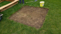 Mit einem Spaten habe ich das Gras entfernt, damit der Sandkasten auf festen Erdreich steht.