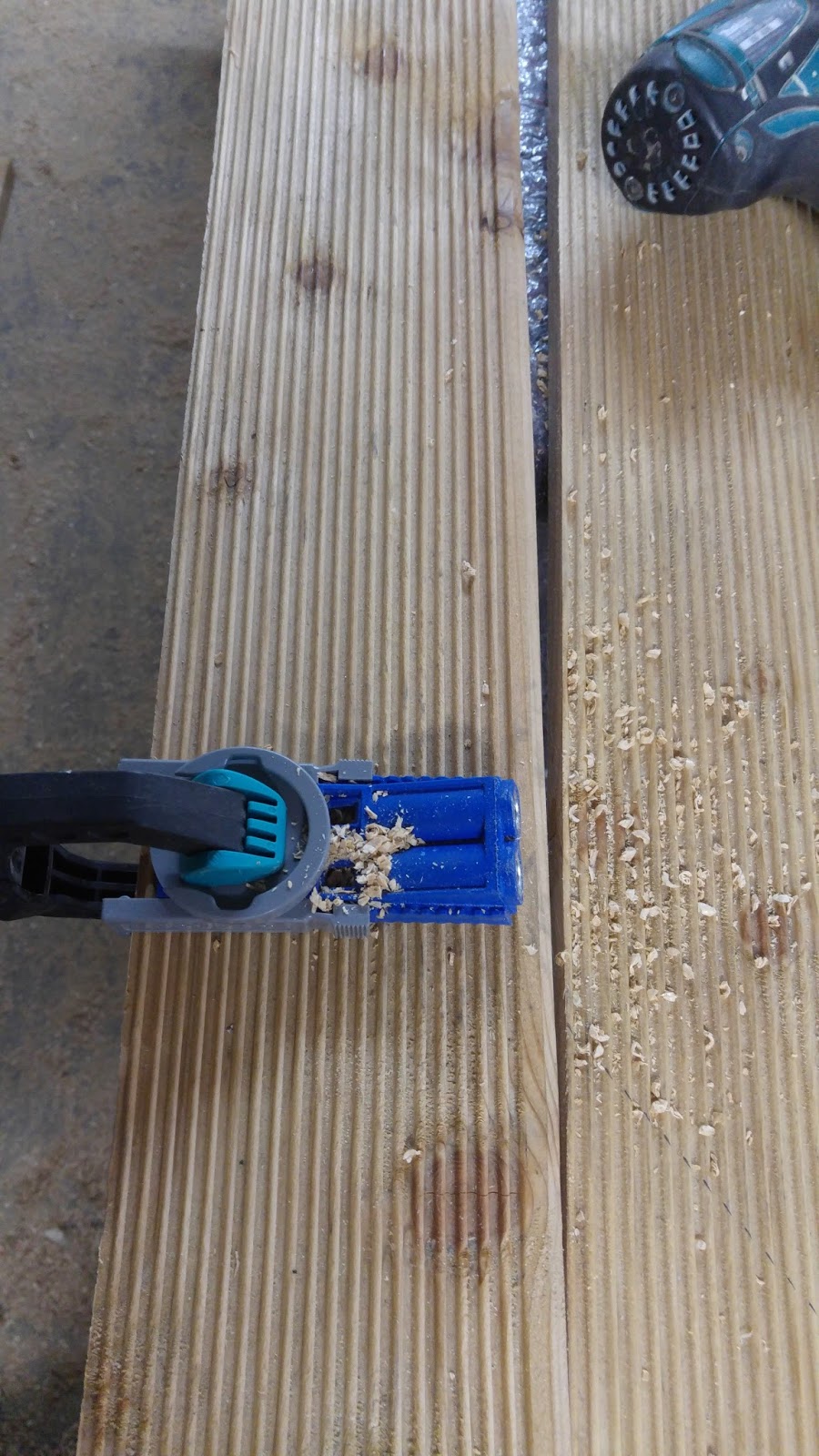 Ich wollte mich bei dem Outdoor Spielzeug nicht voll auf dem Leim verlassen und habe bei der Gelegenheit mein neues Kreg Jig ausprobiert. Das Teil ist echt nicht schlecht.