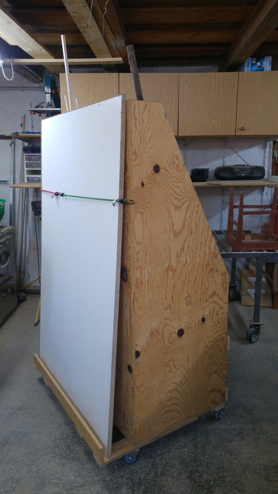 Leider gibt es vom Aufbau aus Zeitgründen keine Fotos. Die Platten haben eine Dicke von 20mm und sind lediglich zusammen geschraubt. Diese dicken Sperrholzlatten sind echt stabil und Leim wird nicht benötigt.