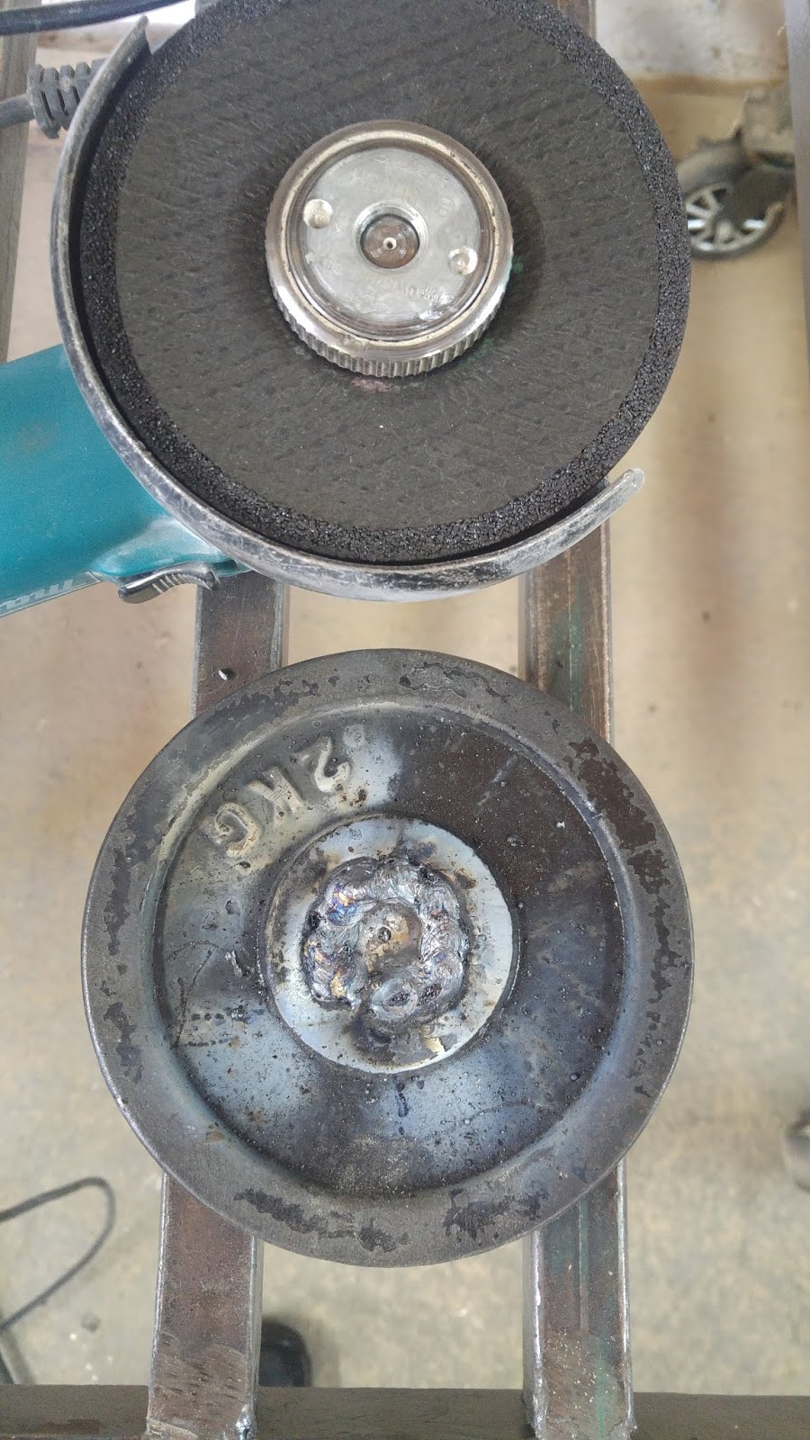 Bevor es an das Erstellen der "1" geht, habe ich mich entschieden, die Hantelscheibe an zu schweißen. Und das hat folgenden Grund: Der Plan ist, die beiden Teile der "1" zusammen zu kleben. Da ich nicht weiß, wie sich der Kleber unter Einwirkung von Hitze verhält, habe ich diesen Schritt vorgezogen.