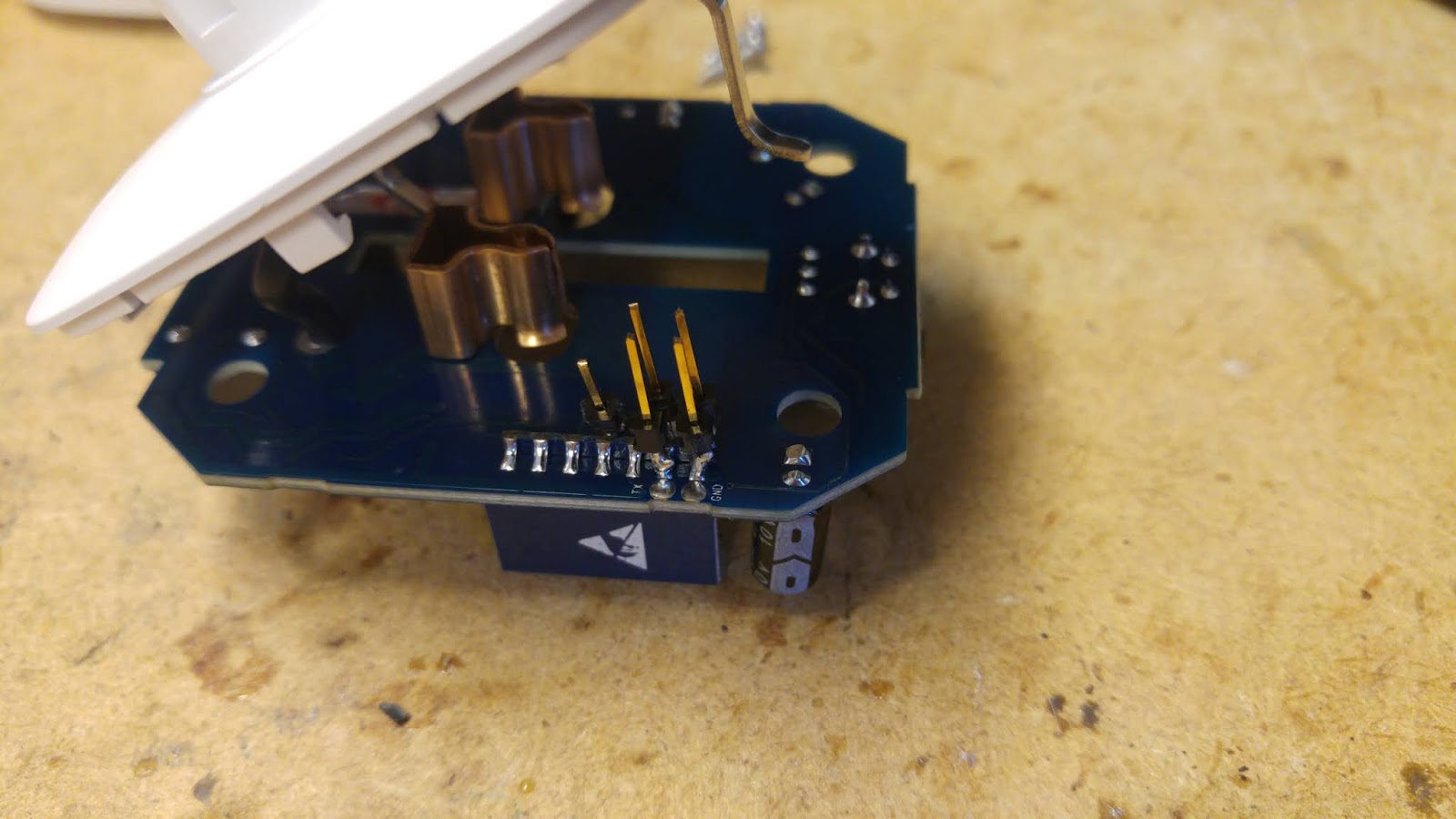 3V3 und GND sind aufgedruckt, TXD und RXD habe ich markiert.