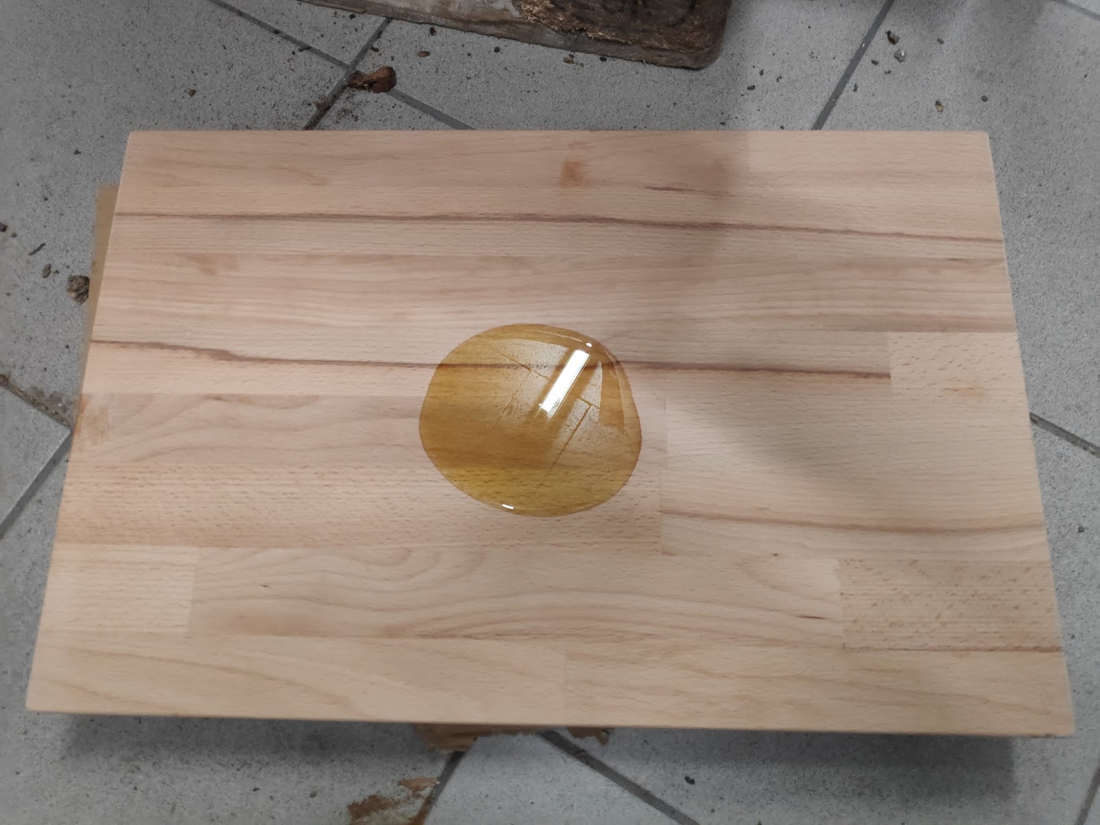 Eine Wissenschaft für sich. Dieses Mal habe ich Olivenöl aus unserem letzten Kroatien Urlaub verwendet. Von der Optik bin ich begeistert. Allerdings muss das Schneidebrett ein paar Mal damit behandelt werden. Ein einmaliger Auftrag ist auf alle Fälle zu wenig. Da sieht man dann jeden Wassertropfen.