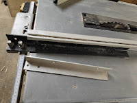 Auf dem Bild oben ist übrigens der "bessere" Schiebeschlitten für die Metabo, welcher ebenfalls dabei war, schon montiert. Den mitgelieferten Winkelanschlag habe ich gleich gar nicht montiert. Der sieht nicht gerade vertrauenerweckend aus.
