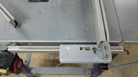 Als ich mir die gebrauchte EMCO-Hobelmaschine kaufte (Beitrag 1, Beitrag 2), gab mir der Verkäufer jedes Zubehör mit, wo er glaubte, dass es zur Hobelmaschine gehörte. Das Zubehör war leider nicht vollständig, und ich wollte es schon entsorgen, als ich plötzlich einen Schiebetisch in den Händen hielt, welcher augenscheinlich nach demselben System funktionierte wie der an meiner Tischkreissäge. Die Schiene des EMCO Tisches musste etwas Dicker gewesen sein und der Tisch war auch etwas höher. Trotzdem konnte ich den Tisch auf meiner Metabo-Schiene montieren.